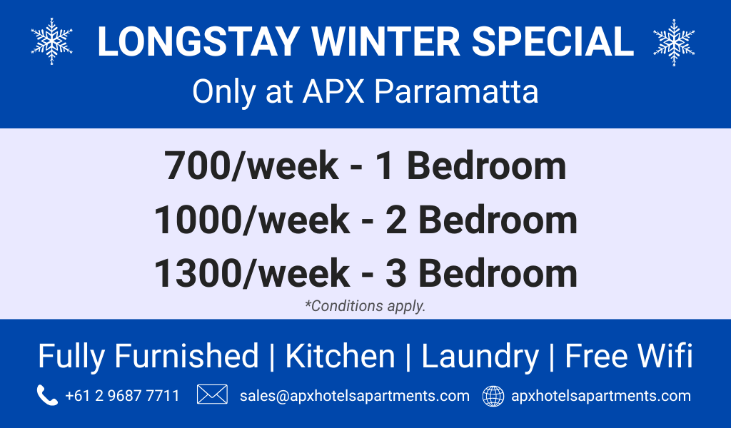 We have focused our efforts in accommodating long stay guests seeking excellent value, reliable service, comfort and convenience. APX offers the perfect choice for long stay accommodation with fully equipped apartments including kitchens with modern appliances, laundries, free Wi-Fi and free premium TV entertainment. Free gym and pool access further enhances your accommodation at APX.